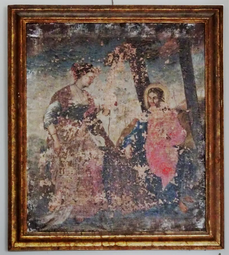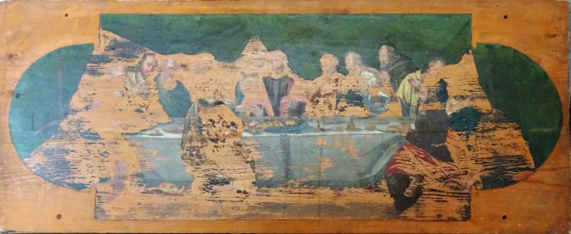 Abendmahldarstellung aus der Ölbergkapelle, stark beschädigt. Vermutlich Darstellung aus der Predella eines Altarretabels. Foto: W.Autenrieth, 2024