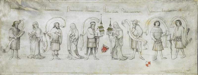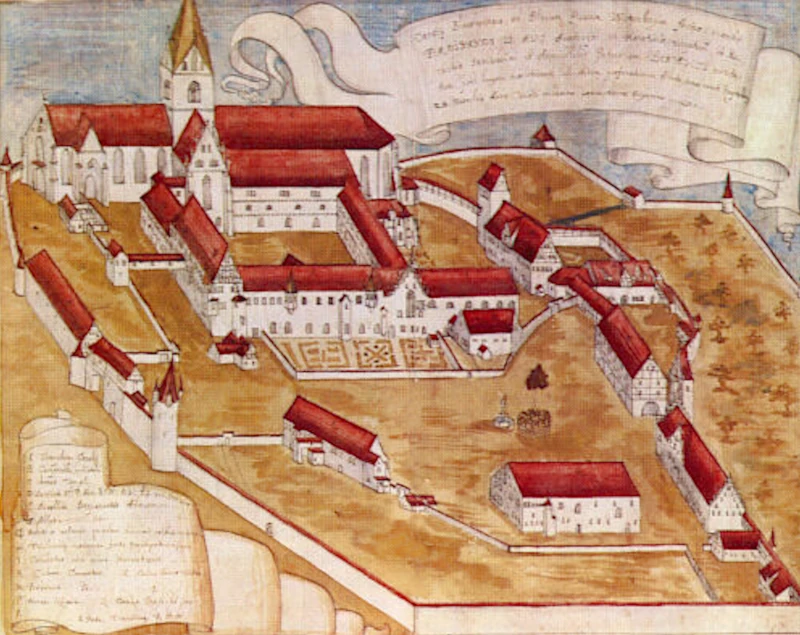 Die Stifter des Klosters sind auf diesem Pergament festgehalten. Das Pergament – vermutlich von 1516 – wird in der Herzog August Bibliothek Wolfenbüttel (Cod. Guelf. 97 Aug. 2°) aufbewahrt und zeigt von links nach rechts: Fridericus Palatinus, seine Frau, Anshelmus Comes, Berchta uxor eius, Hainricus Comes, Adelhait Comitissa, Seibotto Comes de Ruck, Seifridus Comes et Waltherus Comes filii eius. Die Darstellungen entsprechen in Teilen denen, die im Chorgestühl eingeschnitzt sind.